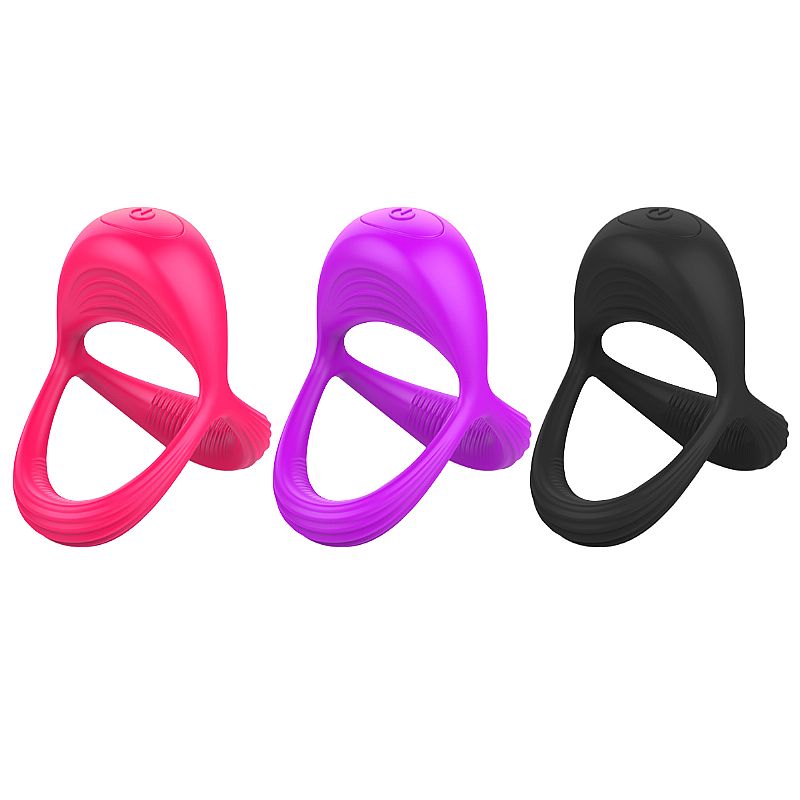 Anel Peniano com estimulador de clitóris, fabricado em silicone, material macio e suave ao toque, com anel para escroto.