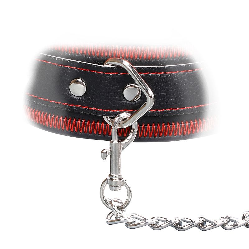É um kit sado com 3 itens, sendo eles mordaça, venda e coleira com guia. Com esse kit erótico,