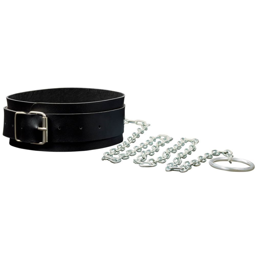 Possui guia em corrente com acabamento niquelado e argola em metal, que oferece maior resistência e durabilidade ao produto. Realize todas as suas fantasias e dominação! O tamanho da guia possibilita travamento e posições variadas para realizar suas fantasias.