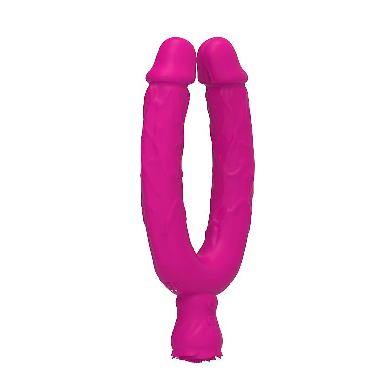 Pênis realístico duplo, 10 modos de vibração nos três motores. confeccionado em silicone. possui glande definida,