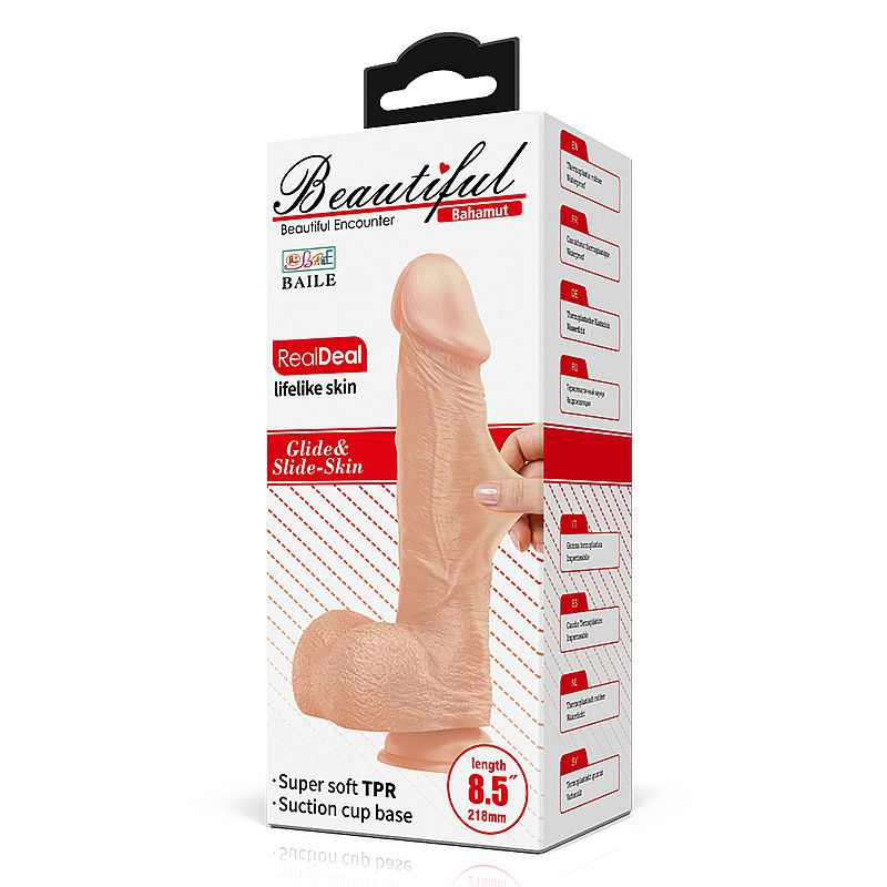 Prótese realística em forma de pênis, confeccionado em silicone possui glande definida,