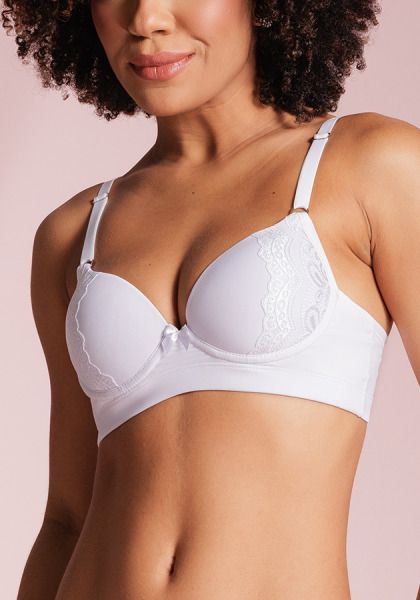 - Confeccionado em microfibra e renda - Bojo de espuma que projeta os seios de forma natural - Alças fixas e reguláveis - Fecho com três ajustes - Ideal para média e alta sustentação